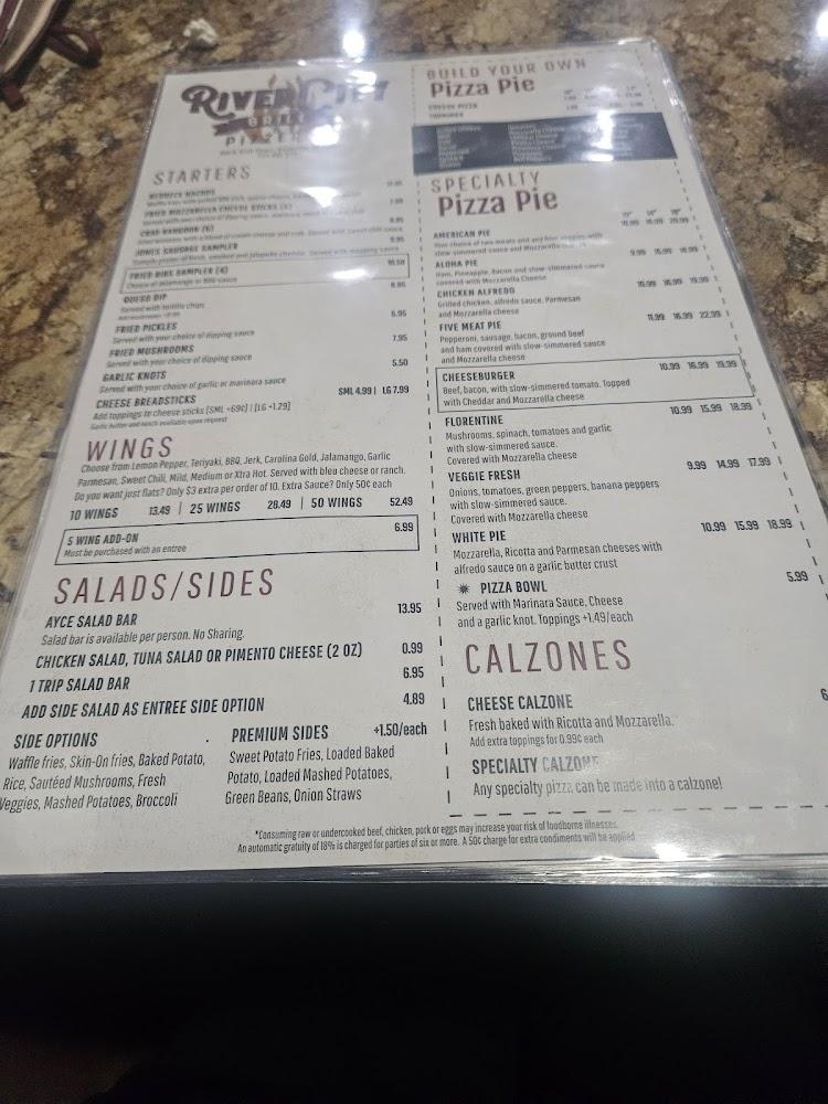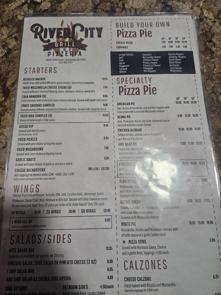 River City Grill and Pizzeria features a diverse menu appealing to many tastes. The stone-fired pizza selection is a highlight, with options like the Aloha Pie and Five Meat Pie. Hand-cut steaks and delicious burgers, such as the Smokehouse Burger, cater to those craving hearty meals.